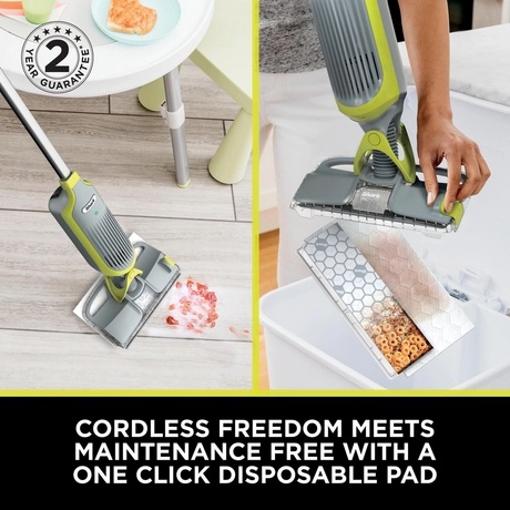 Choose Shark VM200 cordless 2-in-1 vacuum mop buy with targeted spray and disposable pads for precise spray cleaning and no-touch pad hygiene across sealed hard floors. The charcoal grey design complements modern spaces, and cordless convenience supports quick, confident clean-ups whenever needed.
