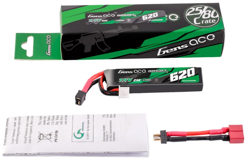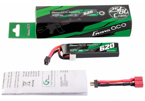 Gens Ace Lipo 620MAH 7.4V 25C 2S1P Airsoft Gun Lipo Battery with Mini Deans(T) Plug is suitable for Pistols