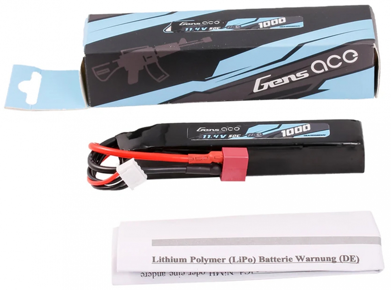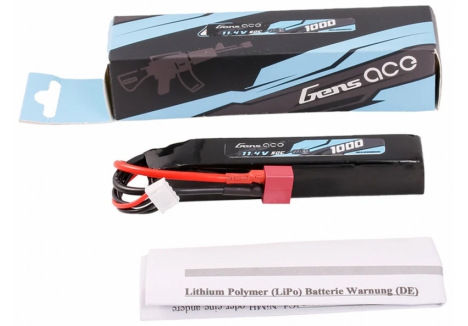 Gens Ace LIPO 1000mAh 11.4V 50C 3S1P Deans(T) High Voltage LIPO Battery Pack For Airsoft