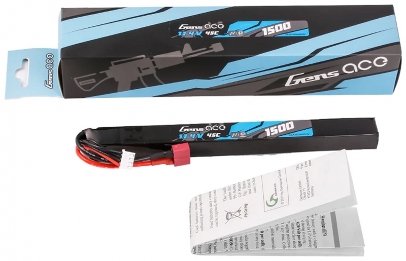 Gens Ace LIPO 1500mAh 11.4V 45C 3S1P Deans(T) High Voltage LIPO Battery Pack