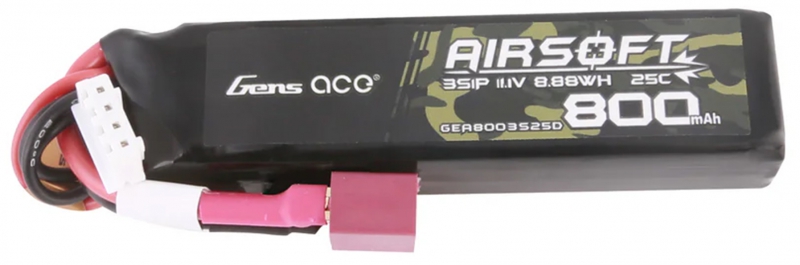Gens Ace Lipo 800MAH 11.1V 25C 3S1P Airsoft Gun Lipo Battery with T (Deans) Plug is designed specifically to power airsoft guns which is suitable for M4 Shorty guns.