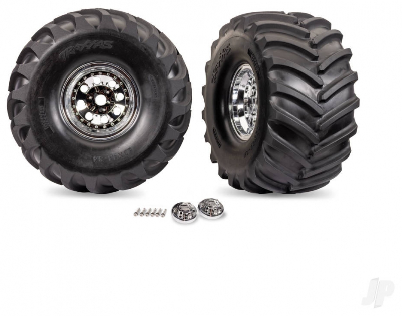 Terra Groove monster truck tyres give your X-Truck a livelier feel with improved grip and greater control. The huge 8.6 tyres are made from an ultra-soft compound for incredible traction with internal belting to reduce ballooning. The 8-hole chrome wheels feature replica hubs for an authentic scale appearance.