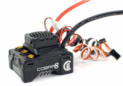 The COBRA 8 allows "on-the-fly" adjustments to be made through the AUX wire once enabled in Castle Link. Once you have selected an AUX wire function, that setting can then be tuned from your transmitter while driving. Torque control, max throttle, max brake and drag brake adjustments are a sampling of the available modes. This real-time tuning allows you to quickly and easily fine-tune your system.