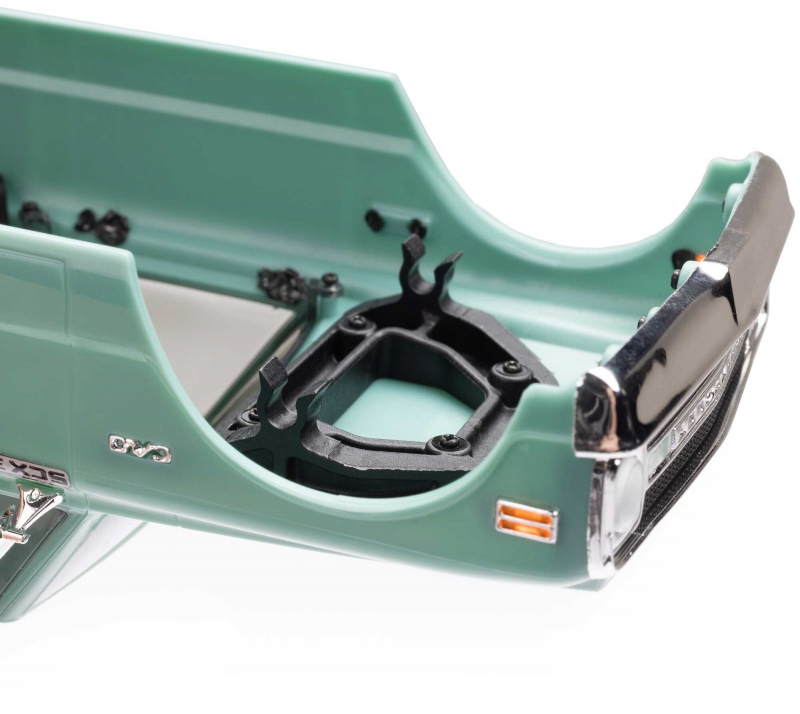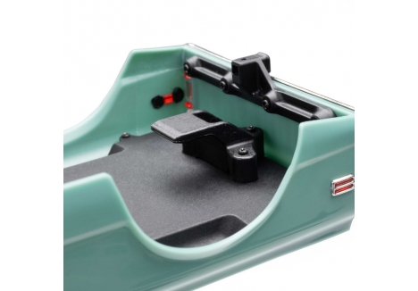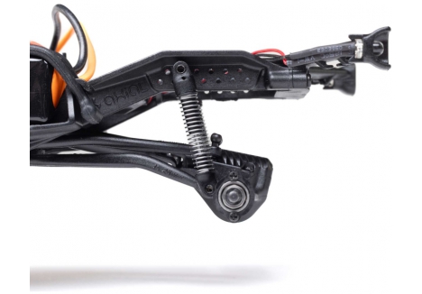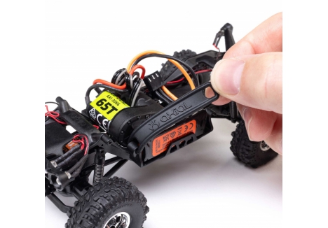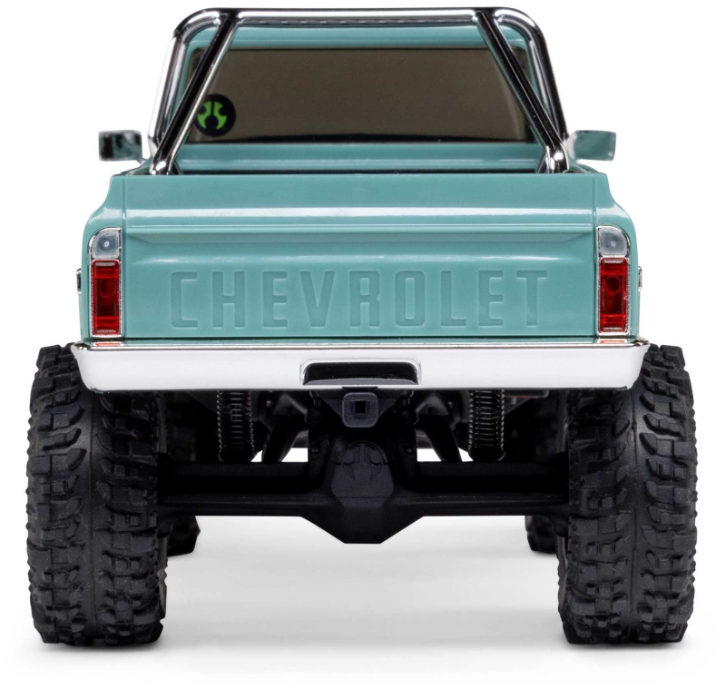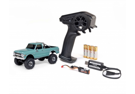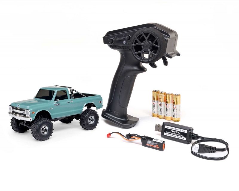 The Chevy K10 includes an angled skid plate to let you easily slide over challenging obstacles - a feature usually found only in competition crawlers. Ramped axle housings and high clearance links also help to avoid dragging and hangups. Climbing stability on the rocks gets a boost from the chassis’ forward weight bias. Other performance features include damped 25mm shocks, full ball bearings, a powerful Axial 65T motor, and dependable Spektrum electronics that are mounted low in the chassis for the optimal center of gravity.