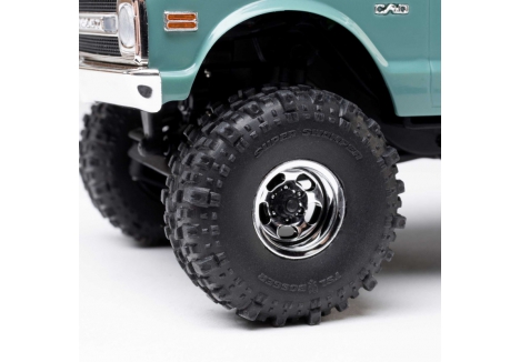 Topping off that trail-ready engineering is a Chevy K10 ABS hard body that proves detailed scale realism can come in any size. An authentic recreation of the full-size truck, the body is complemented by front and rear LEDs and officially licensed Interco Super Swamper tires. These soft compound tires with foam inserts provide all the traction needed for outdoor trail action or for crawling across a desktop, table, or cluttered floor. You can turn any space into your personal Rubicon trail!
