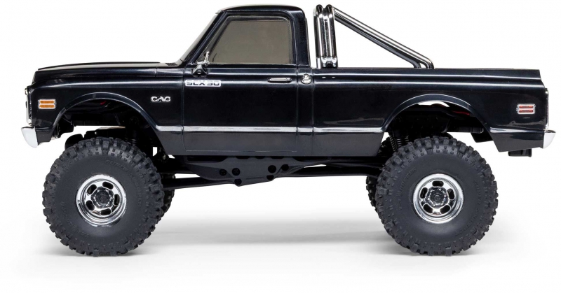 The Chevy K10 includes an angled skid plate to let you easily slide over challenging obstacles - a feature usually found only in competition crawlers. Ramped axle housings and high clearance links also help to avoid dragging and hangups. Climbing stability on the rocks gets a boost from the chassis’ forward weight bias. Other performance features include damped 25mm shocks, full ball bearings, a powerful Axial 65T motor, and dependable Spektrum electronics that are mounted low in the chassis for the optimal center of gravity.