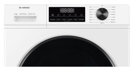 - Product type: Teknix TK3HP10XW heat pump dryer, Teknix 10kg dryer, Teknix white tumble dryer, Teknix freestanding dryer