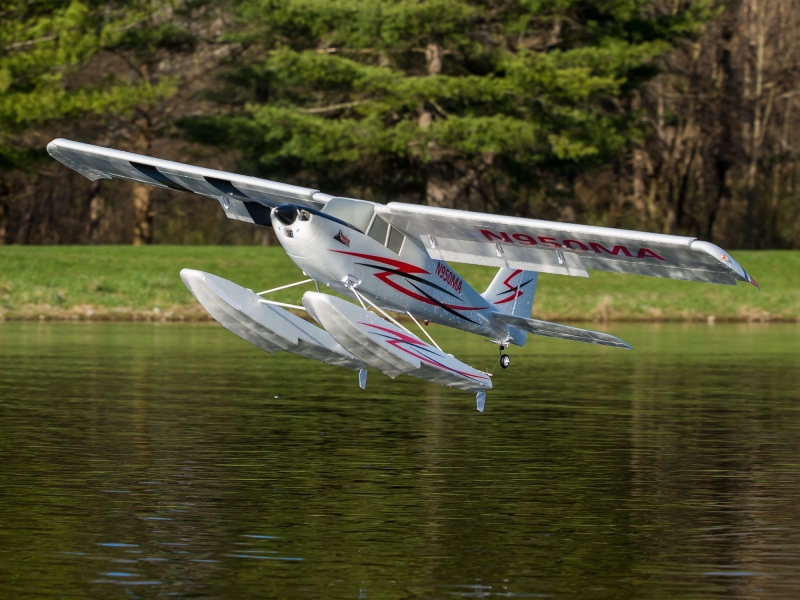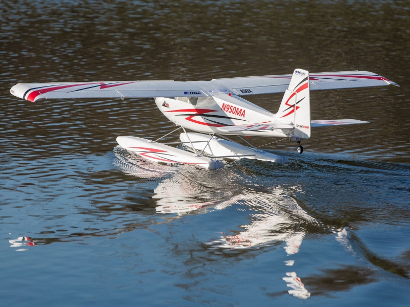 - Includes optional-use floats with steerable rudders for flying from water