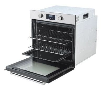 The physical dimensions of 59.5 × 57.5 × 59.5 cm allow the Teknix BITK264ESX built in electric oven to integrate smoothly into standard cabinetry spaces. The manageable net weight of 30.65kg supports easier handling during installation, while the packaged dimensions of 65.5 × 66.5 × 67.5 cm ensure secure transport. These measurements reflect a design that prioritises both practicality and compatibility with modern kitchen layouts.