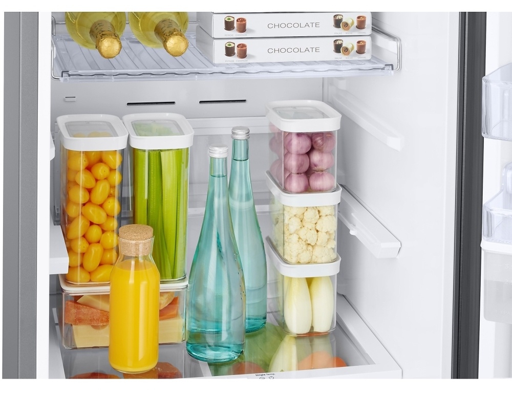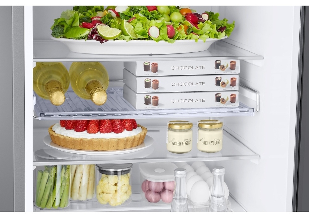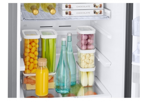 For shoppers browsing Samsung frost free fridge freezer for sale options, water dispensing without plumbing and a dedicated wine shelf can help narrow choices based on day to day convenience and hosting needs. The fridge section includes four shelves and adjustable shelf positions, helping larger bottles or taller items fit more comfortably when storage needs change.