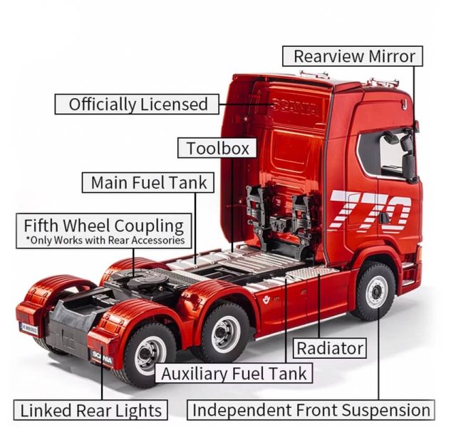 Bring the power and precision of heavy-duty transport to your fingertips with the Officially Licensed Huina Scania Truck, a 1/18 scale radio-controlled tractor truck crafted for realism, performance, and fun. Whether you're a serious RC enthusiast or just starting out, this model is a stunning blend of detail and functionality.