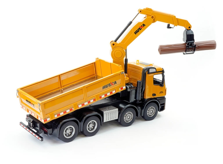 Key Features of the Huina CY1538 1:14 RC Timber Grab 8-Wheeler Dump Truck Yellow