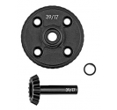 The RC10B84 overdrive gear set (AS92568) is for use in the front gearbox to allow for more equal tyre rollout when the front tyres are much smaller than the rear tyres. This is common on surfaces like carpet.