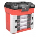 Team Corally's brand new polypropylene PIT CASE features four large assortment boxes with adjustable compartments and secure locks,roomy storage under the lid for your transmitter or charger and 3 extra lid compartments with movable dividers.