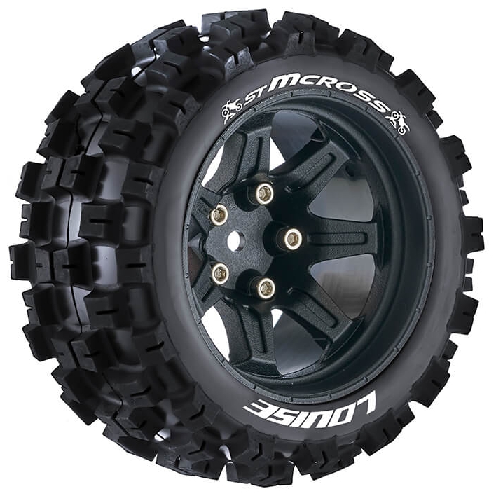 Series: ST-McrossCompound: SoftColour: BlackHex Fitment: 14mmFits: 1/10 Stadium Truck, Granite 4x4Tyre Width: 52.0mmTyre Diameter: 105.3mmWheel Offset: TBCIncludes Insert: YesGlued: Yes