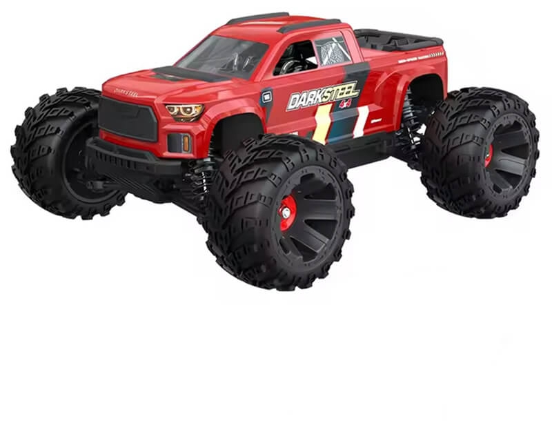 With 4WD drivetrain, metal pinion gear, and a 45A brushless ESC, the monster truck tackles demanding conditions. The massive 180 mm tires provide optimal grip, while the oil-filled shock absorbers and the robust multi-link suspension soak up even hard landings.