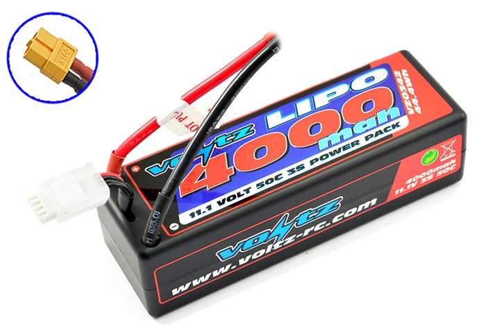 Experience the rugged durability of Voltz RC LiPo power with this 4000mAh 11.1V 50C hard case low profile lithium polymer battery suitable for all radio control vehicles. The hard shell provides extra protection for the battery, allowing the RC car to be driven to its extremes whilst maintaining great power.