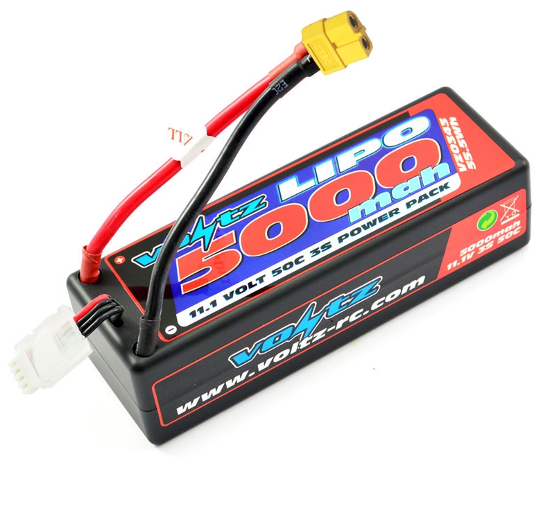 Experience the rugged durability of Voltz RC LiPo power with this 5000mAh 11.1V 50C hard case low profile lithium polymer battery suitable for all radio control vehicles. The hard shell provides extra protection for the battery, allowing the RC car to be driven to its extremes whilst maintaining great power.