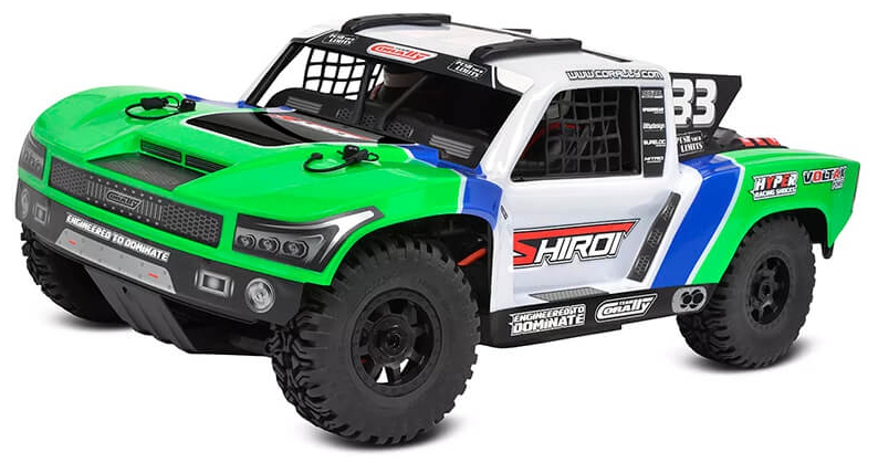 Step into the world of Short Course Trucks with the Team Corally SHIROI XP 6S, a true 1/8 scale, 6S-powered machine. SHIROI captures the stance and style of full-size desert racers while delivering the rugged strength and handling demanded by hobbyists who expect more from their RC driving experience.