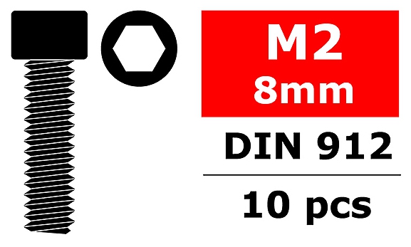 Corally CORALLY STEEL SCREWS M2 X 8MM HEX SOCKET HEAD 10 PCS C-3001-20-08