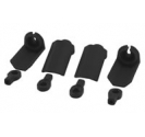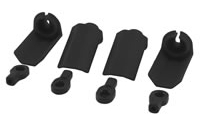 RPM Shock Shaft Guards are a simple design, replacing your stock shock spring cup with one that has a thin but tough shield rising up to the base of the shock body, completely blocking debris from striking the shock shaft. The back and sides are open, which prevents debris from building inside the guard as well. The kit comes with replacement oversized shock rod ends, improving durability and consistency on the shock pivot ball. Additionally, we redesigned the top of the rod end so it is square. That square end keys the shock shaft guard for directional control. The front shield of the guard covers over 100 degrees of frontal exposure!
