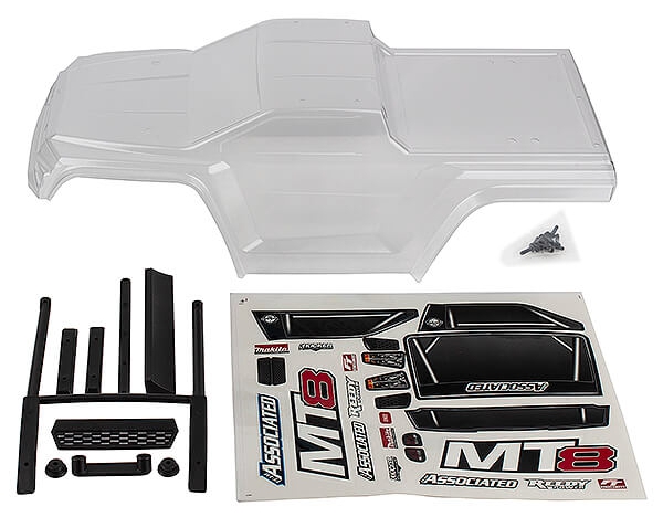 TEAM ASSOCIATED RIVAL MT8 BODY SET, CLEAR AS25922