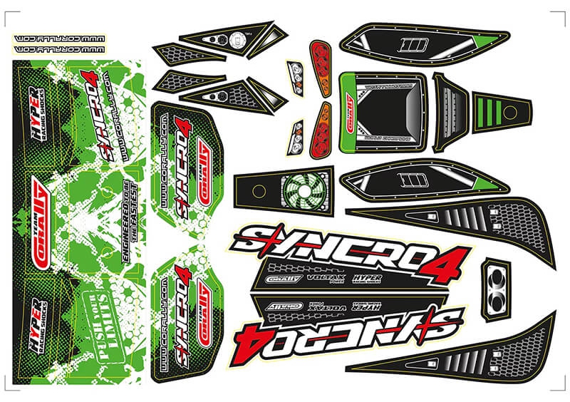Corally CORALLY BODY DECAL SHEET SYNCRO PRECUT GREEN COLOUR C-00180-1055-3G