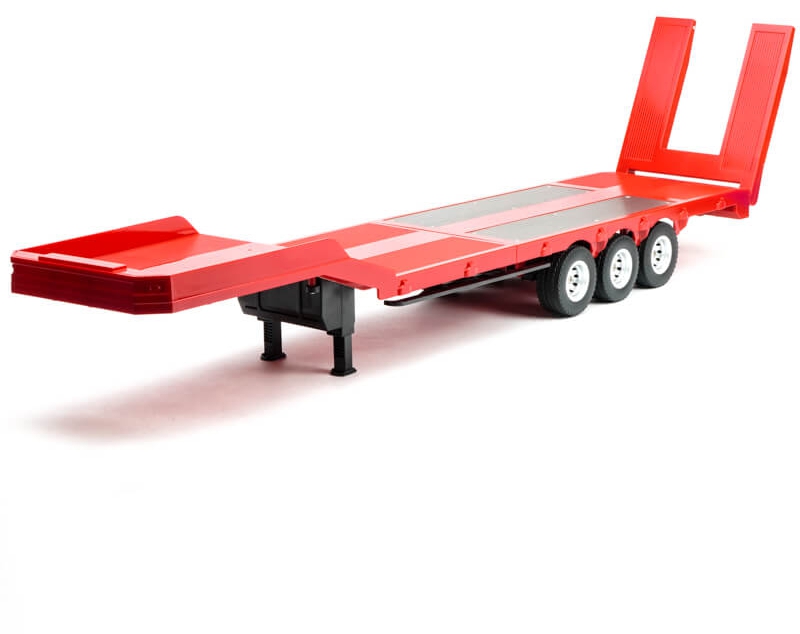 Ideal for transporting scale loads such as shipping containers, pallets or light construction equipment, this trailer adds genuine utility and visual impact to your haulage setup. It features a strong metal chassis, treaded rubber tyres, and a fifth-wheel coupling compatible with most 1:18 scale tractor units.