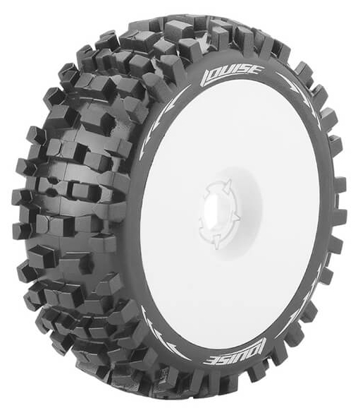 Series: B-UlldozeCompound: SoftColour: WhiteHex Fitment: 17mmFits: 1/8 Off-Road BuggyTyre Width: 44.6mmTyre Diameter: 118.7mmWheel Offset: TBCIncludes Insert: YesGlued: Yes