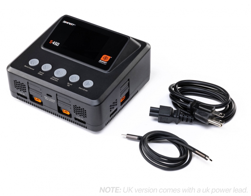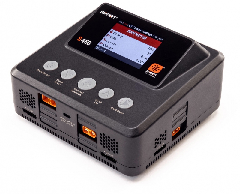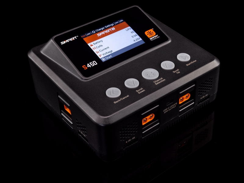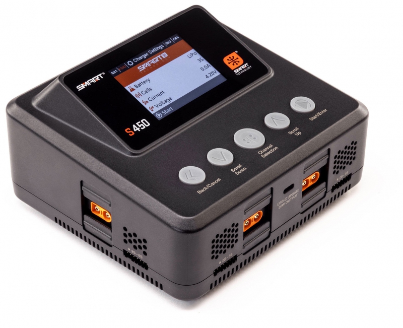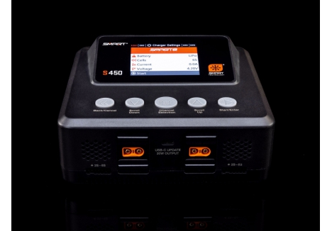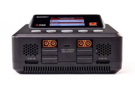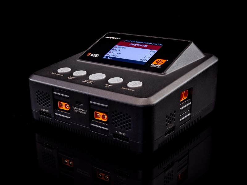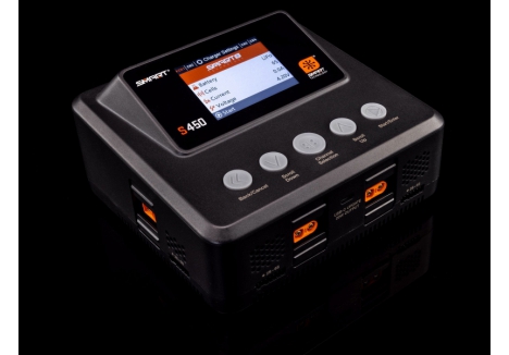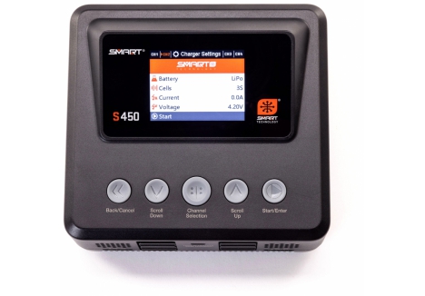 The S450 G2 AC/DC Smart Charger makes battery charging the easiest it has ever been. Its Auto Charge feature recognizes your Smart battery's parameters, such as chemistry type and suggested charge rate, and begins safe, correct charging automatically when the charge lead is connected. A clock on the charger's screen counts down the time until your Smart battery is fully charged and ready to use.