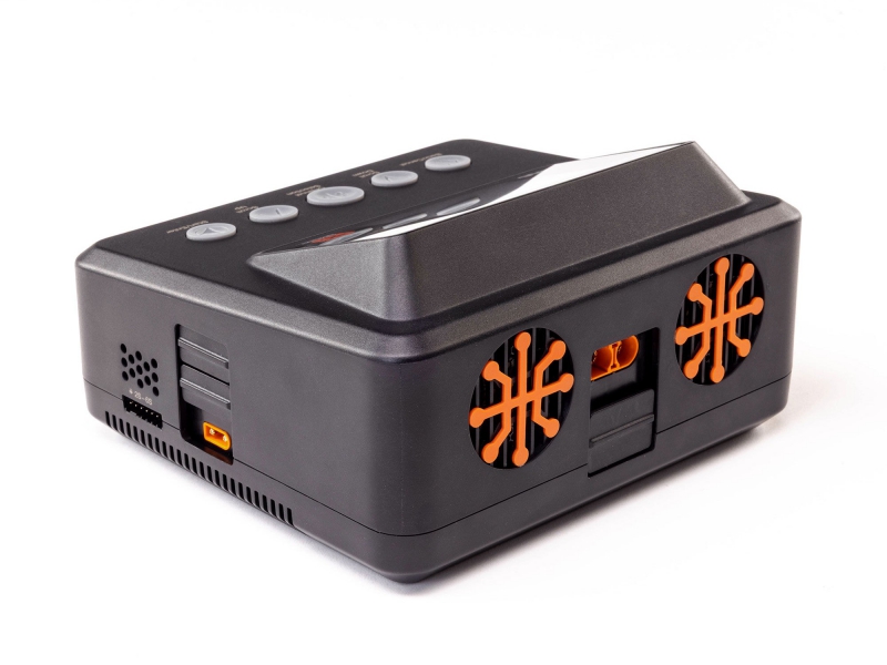 The SpektrumT S450 G2 AC/DC Smart 4x50W Charger features four fully independent outputs, each with IC2®, IC3®, and IC5® connections for adapter-free convenience. Each port is capable of intelligently sharing available power for maximum efficiency. The S450 provides easy charging, especially when paired with Spektrum Smart batteries with Auto Charge simplicity.