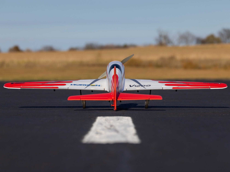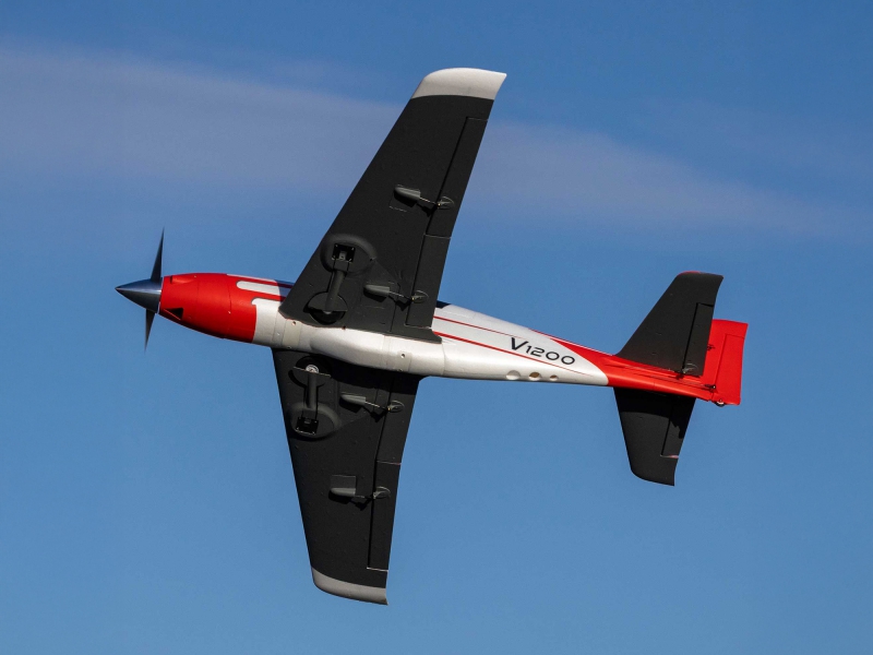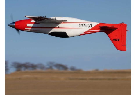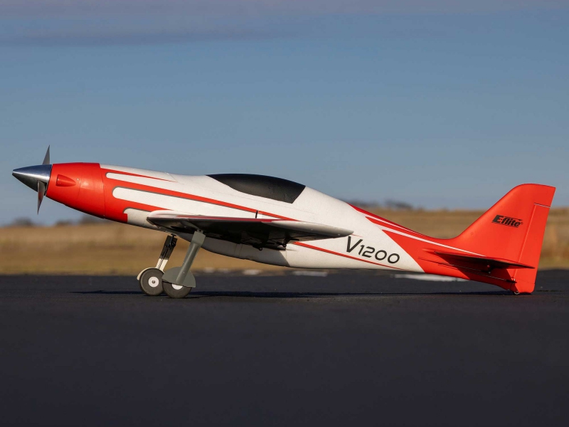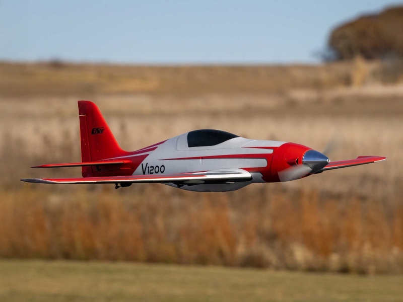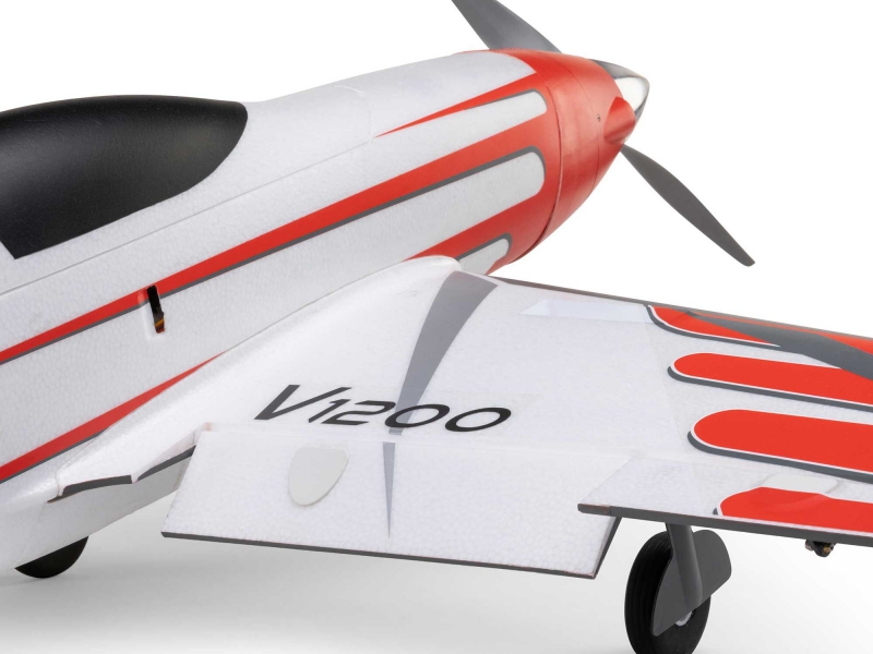 The V1200 is the fastest prop-driven E-flite airplane yet! It can reach level-flight top speeds of 140+ MPH on 6S, or 110+ MPH on 4S, right out of the box. This updated and upgraded version includes more durable and reliable retracts, a higher visibility colour scheme with improved decals.
