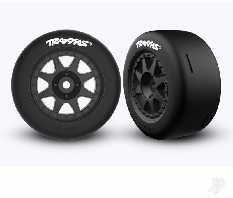 Mini Rally Speed Slick tires put maximum traction to the pavement for astonishing acceleration and cornering grip. Rear Speed Slick tires are softer than the front tires to maintain Rally's superior handling and balance. Tires come pre-glued and mounted to white 8-spoke Rally wheels. (Fits 12 mm hex, rear position)