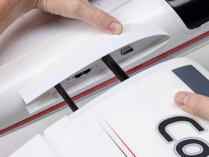 - Strong and easy to install/remove two-piece composite reinforced wing with hands-free servo connections