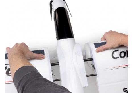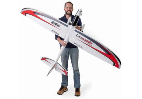 Many low-time to experienced pilots appreciate the one-of-a-kind blend of smooth soaring, sport, high-speed, and aerobatic flight performance the incredibly popular UMX and Conscendo Evolution 1.5m models offer. So much so that they've often asked for an even larger version. The E-flite Conscendo 2.0m is now the largest, most powerful, capable, and feature-rich Conscendo yet! The brushless power system, including a telemetry-capable 70-amp ESC, delivers plenty of thrust for fast climbs to soaring altitude, sport flying, and aerobatics with 4S 3200mAh to 5000mAh batteries. Or it delivers even more speed and thrust for unlimited vertical and aerobatic performance with 6S batteries. The higher-density EPO airframe with composite reinforcement throughout has the additional strength and stiffness to handle all that power and performance. It's also been designed to assemble extremely quickly and easily without any tools or fasteners. The two-piece stabilizers simply snap into place, while the two-piece wing with hands-free connections also snaps into or out of place for convenient storage and transport. Even the optional-use landing gear with wheel pants snaps into/out of place quickly, and along with the steerable tailwheel that's tucked away in the bottom of the rudder, makes it possible to take off from and land on smooth surfaces.