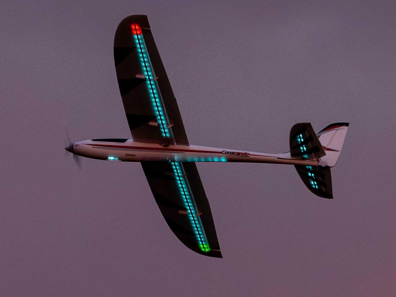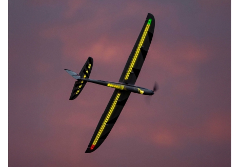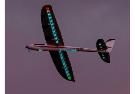 The wing also features separate flaps that offer improved slow-flight capability, plus they can travel both ways for optional full-span aileron/flaperon/spoileron and crow operation. Both versions include six digital, metal-geared servos with ball-link equipped linkages to deliver precise and reliable control at every speed. The BNF Basic version also includes a factory-installed Spektrum AR8360T+ receiver to deliver full-range real-time telemetry, including altitude and variometer data, to compatible transmitters. Plus, it features the exclusive benefits of enhanced AS3X+, optional-use SAFE Select and Hand Launch Assist technologies, along with a convenient Smart Transmitter File (STF). Both versions are also compatible with an optional LED night light set (sold separately) that includes a controller so you can change the colour and sequence of the lights right from the transmitter. It all adds up to deliver a unique flying experience you can't get with the smaller Conscendo or any other models!