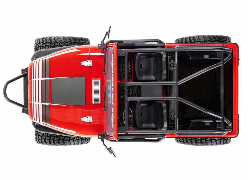 Made of durable polycarbonate, the officially licensed and factory-finished CJ-7 scale body comes richly detailed with officially licensed Gen-Right bumpers and body armor, a full injection-molded roll cage, plus a full interior including an opening center console. Open the doors or remove them entyrely. The T2 version features an authentic Copper Brown finish with chrome grille and LAREDO badging that pays tribute to the iconic trim level of the late 70s and early 80s.