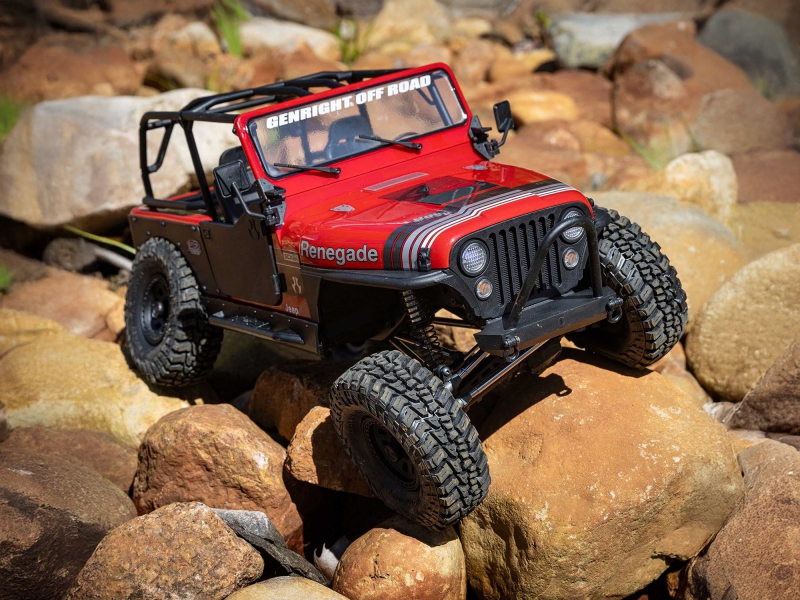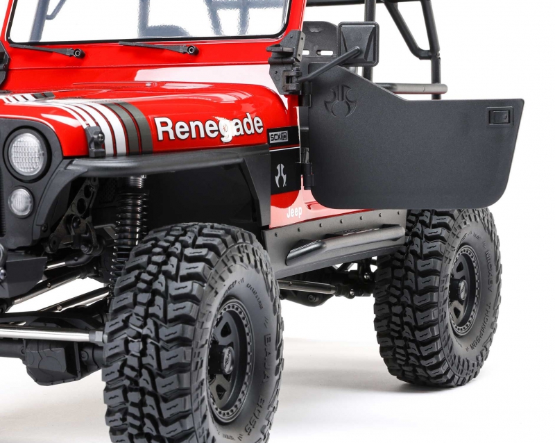 The SCX10 III Jeep CJ-7 tackles any trail with confidence, but its incredible scale detail makes Axial fans eager to turn it into their next rock-crawling masterpiece. In addition to the officially licensed Jeep CJ-7 body, this rig features officially licensed Gen-Right bumpers and body armor, a complete interior with an opening center console, a roll cage, and more. Even the wheels and tyres add to its authenticity. The wheels are officially licensed Raceline Daytona beadlocks, and the high-traction tyres are officially licensed Mickey Thompson Baja Boss treads.
