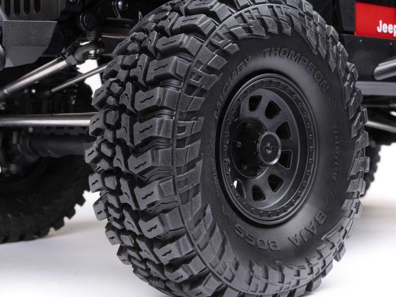 Mounted on officially licensed Raceline Daytona beadlock wheels, the officially licensed Mickey Thompson Baja Boss tyres find secure footing wherever you crawl.
