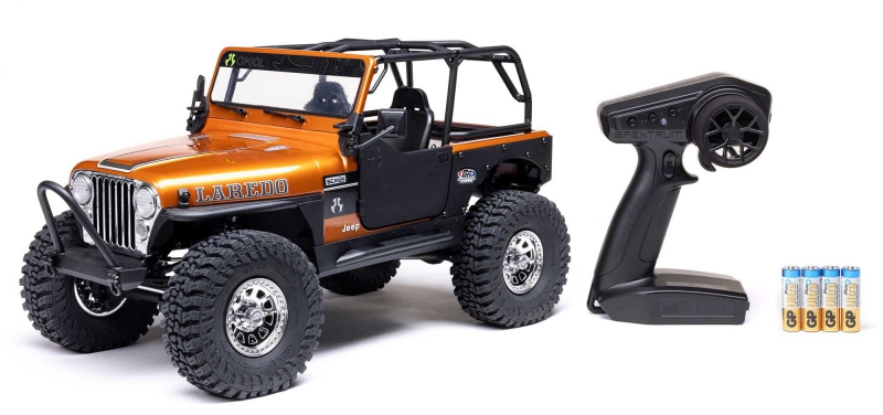 The SCX10 III Jeep CJ-7 V2 arrives fully finished and ready-to-run with a factory-installed, brushed power system and Spektrum SLT3 transmitter. The V2 features upgraded electronics, including a separate ESC and receiver for easier upgrades, a stronger steel-gear servo with industry-standard 25T spline, and a dual-protocol receiver that's compatible with advanced Spektrum controllers. Just add your choice of 2-3S LiPo battery and charger.