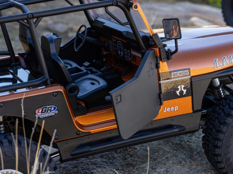 The SCX10 III Jeep CJ-7 tackles any trail with confidence, but its incredible scale detail makes Axial fans eager to turn it into their next rock-crawling masterpiece. In addition to the officially licensed Jeep CJ-7 body, this rig features officially licensed Gen-Right bumpers and body armor, a complete interior with an opening center console, a roll cage, and more. Even the wheels and tyres add to its authenticity. The wheels are officially licensed Raceline Daytona beadlocks, and the high-traction tyres are officially licensed Mickey Thompson Baja Boss treads.