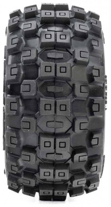 The Badlands tread pattern is one of the most recognized designs in RC. Its aggressive square lugs create multiple biting edges that dig into loose terrain, generating strong acceleration grip and improved deceleration control. Scaled specifically for the MINI KRATON, it maintains the performance profile drivers expect from the Badlands name.